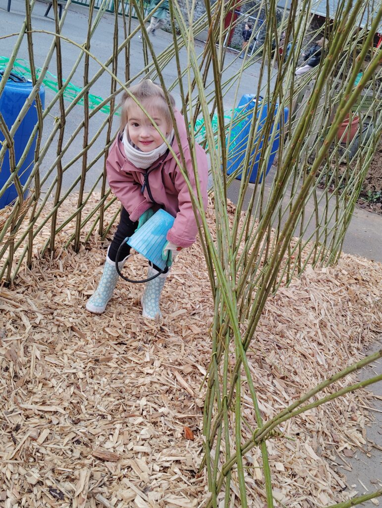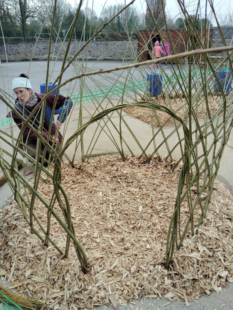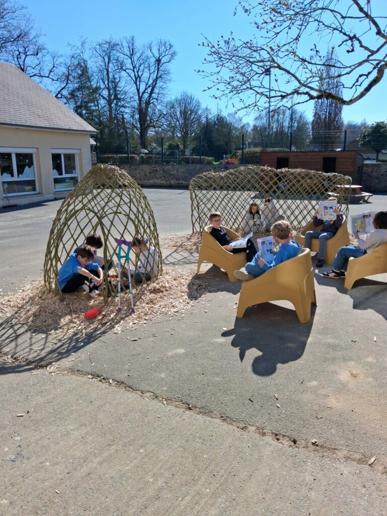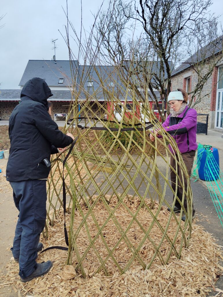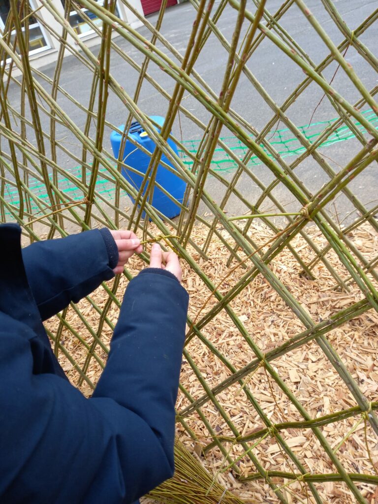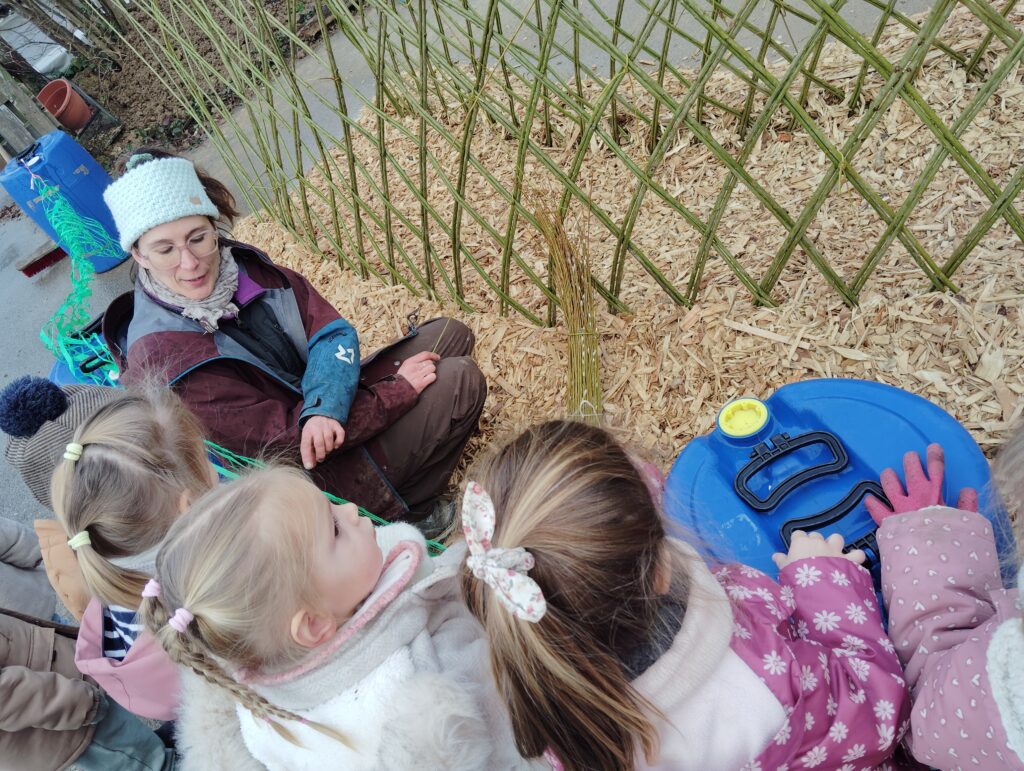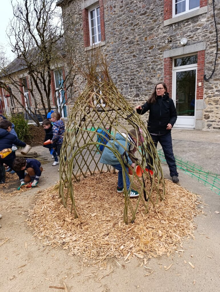 L’intérêt d’un espace végétalisé plus grand était aussi au cœur de la réflexion. Les parents de l’APEL-OGEC se sont mobilisés une première fois en octobre pour préparer la cour à ce changement avecc le décroutage du goudron ! Puis ce samedi, accompagnés de l’entreprise Fournaise, ils ont commencé la plantation d’osier, le bois tendre de l’année du saule.. Les enfants ont pris plaisir à terminer ce travail en échangeant avec les paysagistes.