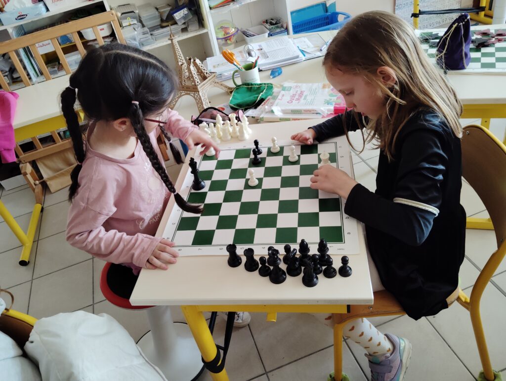 Les élèves de GS à CM2 sont initiés aux échecs tout au long de la période, l’occasion de découvrir ou bien de perfectionner les stratégies pour celles et ceux qui ont pratiqué l’activité avec Alan sur les temps périscolaires.